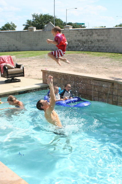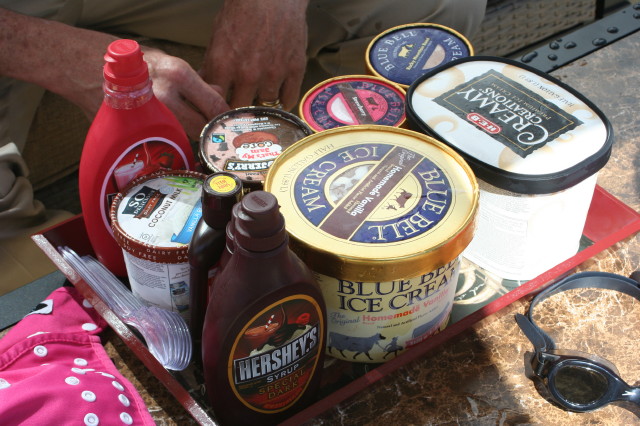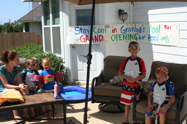 As soon as Pappy announced plans to have a pool built, the boys were all planning a big opening party.  Our visit began on a Sunday afternoon with the Grand Opening, ice cream included, of course!