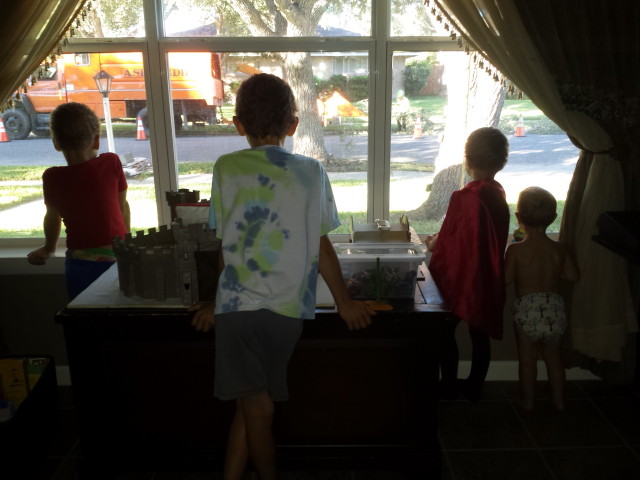 Outside my window…the sun is shining, a breeze is blowing and four happy little children are running around, chasing one another.