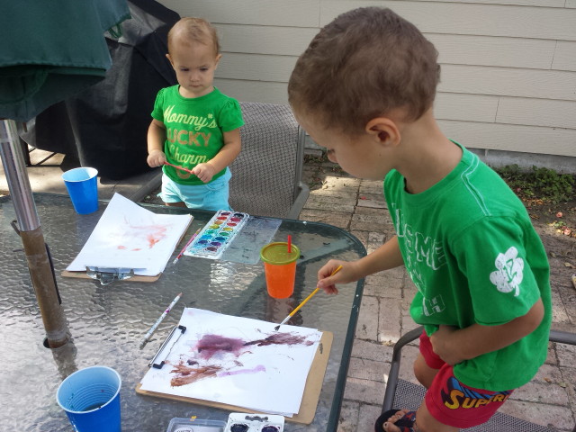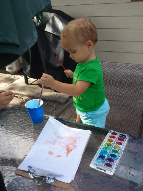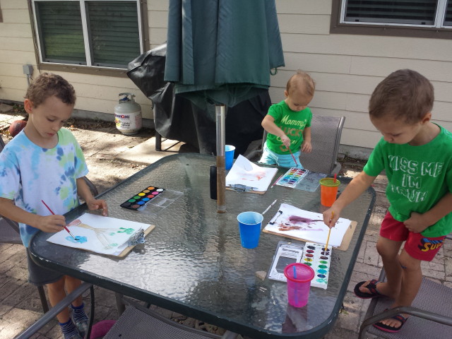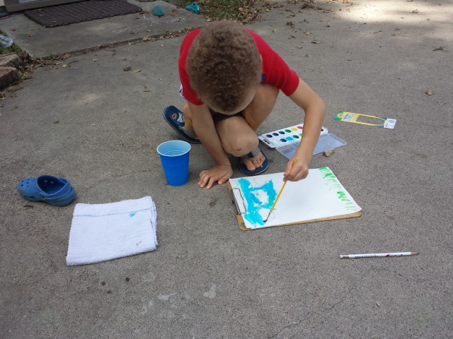 In our learning room…finally moving into the Middle Ages…so many exciting things to come…knights and castles, King Arthur and the printing press. Finally broke out the watercolors for nature study again…long overdue.