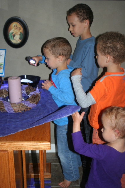 6.  Our individual sacrifices.  We don’t eat meat on Fridays…that’s called for by the Church, but considering the fact that my kids eat whatever is served to them, it doesn’t feel like much of a sacrifice over here (not even to Daxson or I, who usually eat fish on Fridays year-round), so I also ask each of the kids to give up something that’s a big deal for them for the duration of Lent…it could be as simple as juice with dinner or syrup with breakfast.  I like it to be tangible, though.  (When they make sacrifices like “I’m going to quit whining,” it’s a little hard for kids to “see” that and therefore, they tend to forget about their sacrifice over the course of Lent and they lose sight of the purpose of making a sacrifice…which, of course, is rooted in the idea that Jesus willingly sacrificed his life for us…surely, we can suffer a little during the 40 days of Lent in our own small ways in an effort to grow closer to Him.)  Making these small sacrifices is actually a big deal in the spiritual life of children…it forces them to call to mind how incredibly blessed they are each time their sacrifice is repeated.  Even though it feels small, to us who are overindulged and spoiled, the act of giving something up…anything, no matter how small, rewires our thinking and makes us grateful for all the many blessings in our life…even the small things in life…juice with dinner or syrup with breakfast.  I also ask the older kids to make one positive change in their lives during Lent (this is a sacrifice, too!  Changing habits is hard!)…this is usually a little more intangible…maybe to commit to exchanging a good habit for a bad habit or making a commitment to do something that makes them a better person (or a better brother or a better son, etc.).