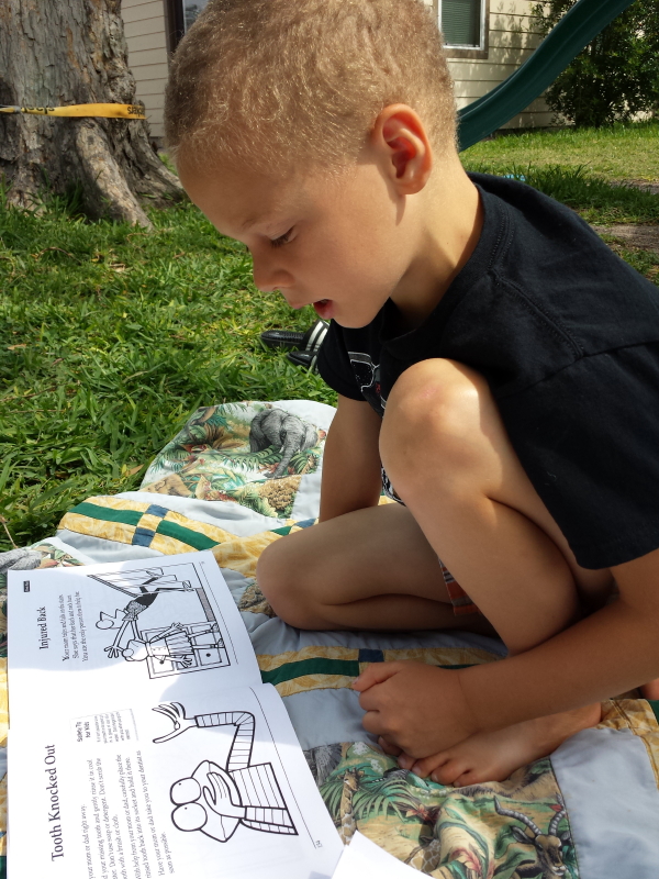 Thursday: Listening to this kid inform me about all the ways kids can stay safe (he’s the only kid I know that has read the safety handbook from cover to cover and enjoyed it).