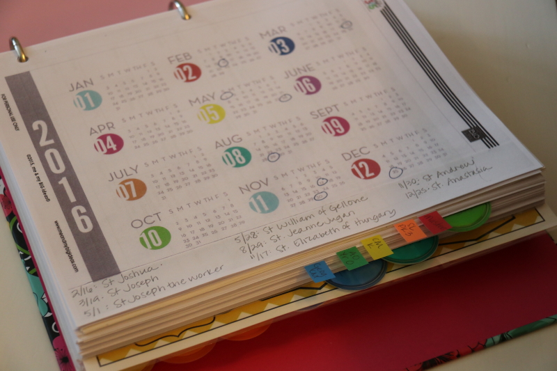 I also included a year-at-a-glance calendar for myself that highlights important feast days that we like to celebrate throughout the year.