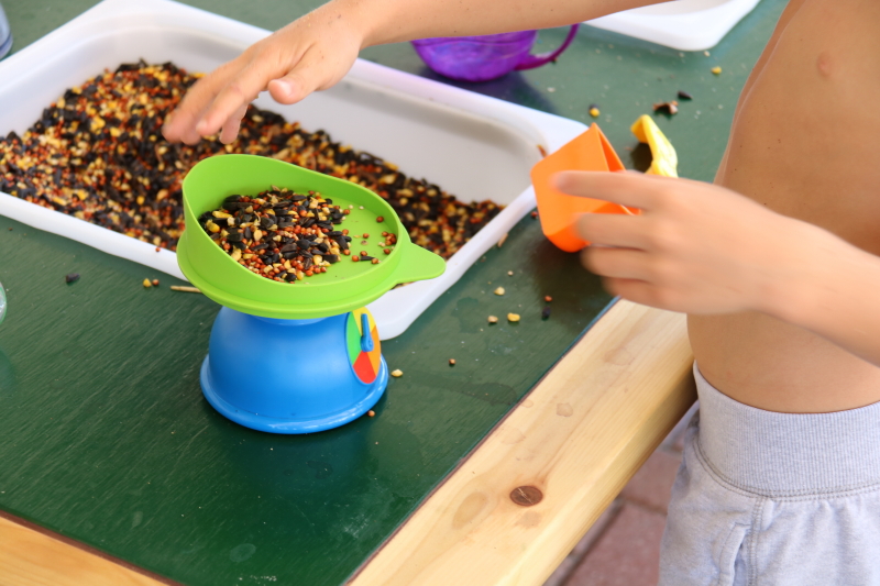 It’s nice having a little table for the little ones to work at and when their attention wanders, they can play just around the corner in the living room without disturbing the big kids.  Also, Pappy provided a beautiful sensory table for Andrew and Katie and it’s just outside the schoolroom window.  Andrew is already in love with his table and the opportunities are endless.  Pappy even included a light box, which allows the light to shine through transparent items placed on top.  All beautifully constructed with precision and attention to detail.