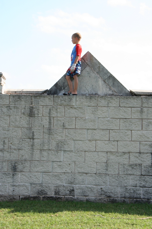William made himself a grappling hook which he used to climb the wall in my parents backyard. From there he monitored traffic (and is positive he saw the real Carmen Sandiego escape).