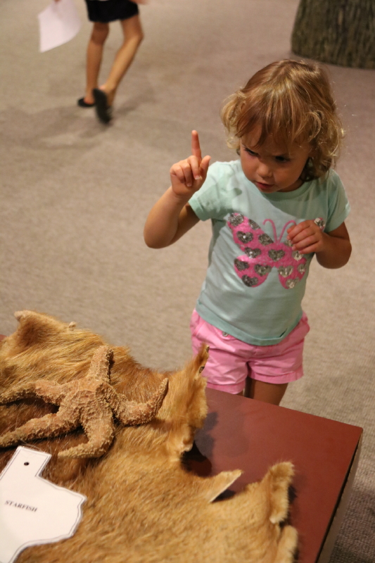 J: I wish I had known there were birds sounds I could do. Then remember we saw some animal skins? Alligator skins and we saw an actual starfish!