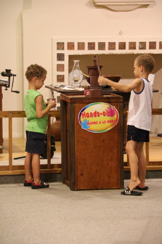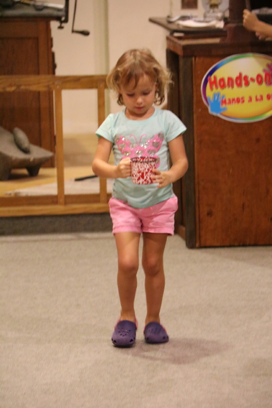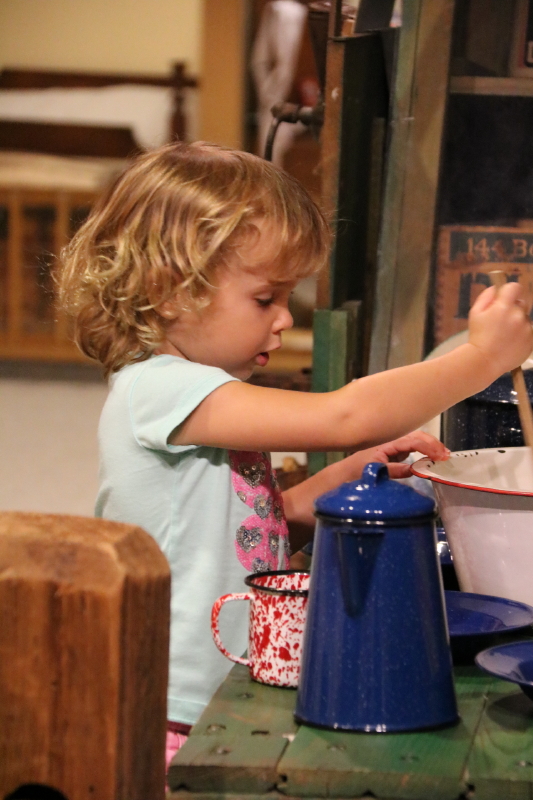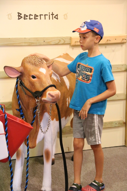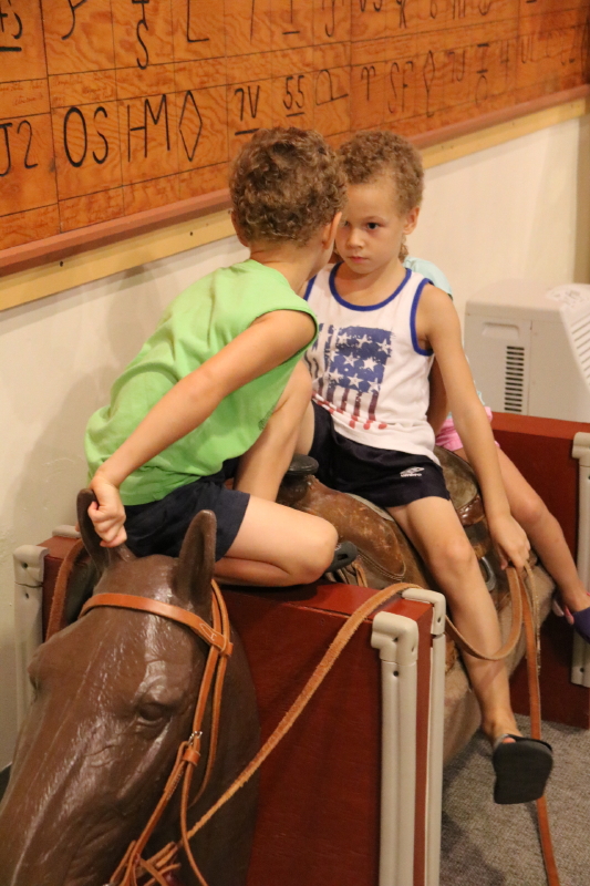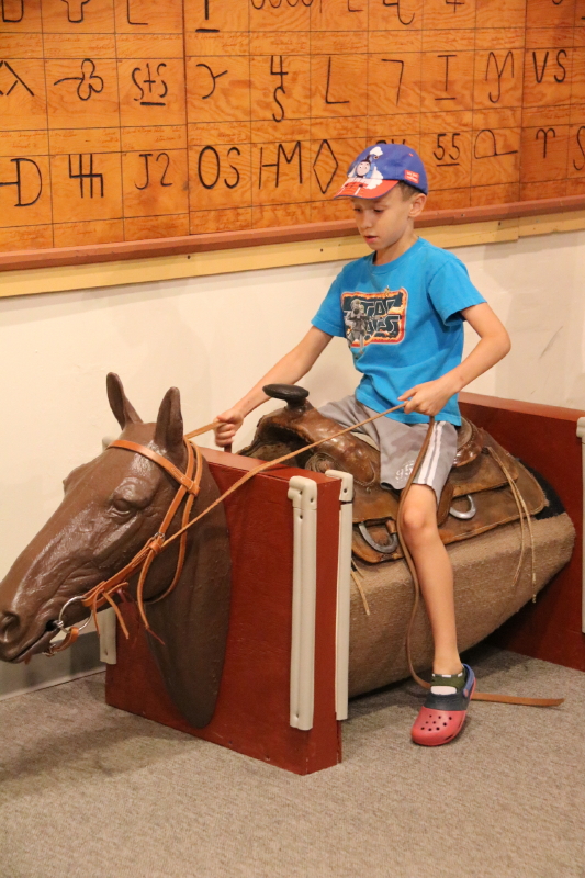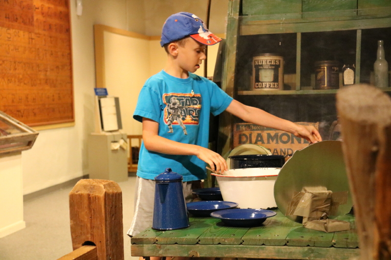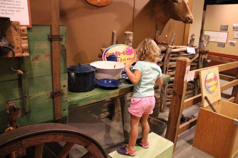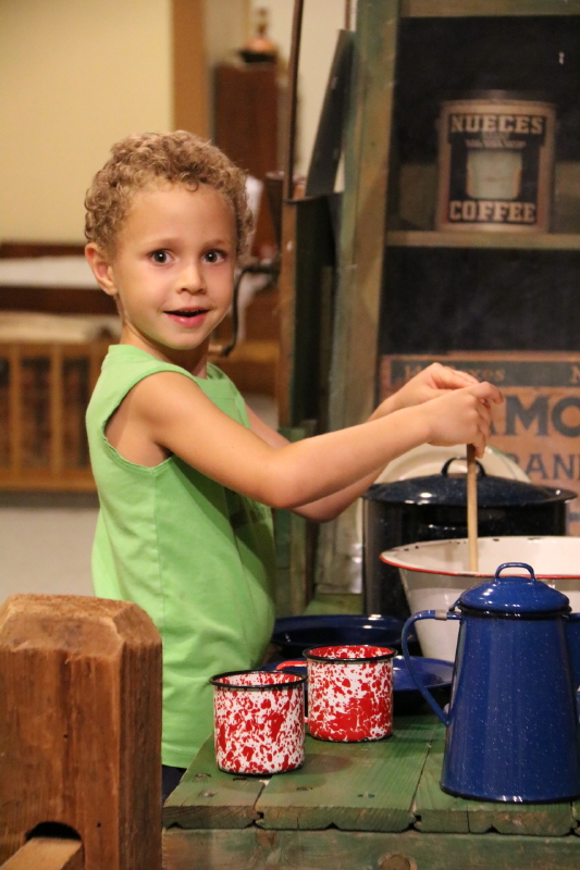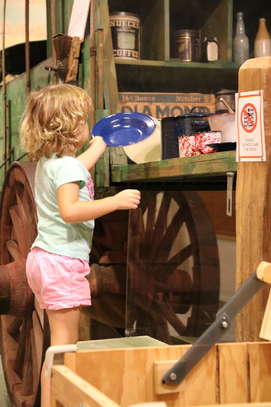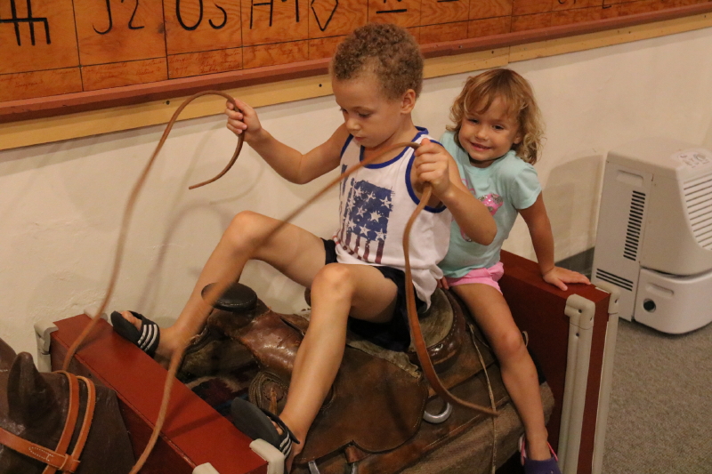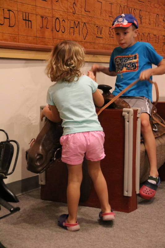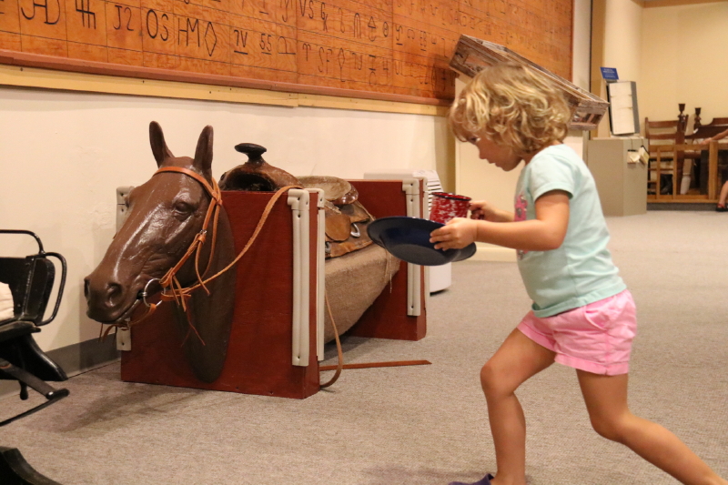 J: After the habitats, we walked over to the Wild West room. I walked in and at first I thought we were just going to pass through it, but it turned out we were actually going to play in it. The Wild West room was made up of things to do in the wild west: ride a horse, take care of a calf, cook, pump water.