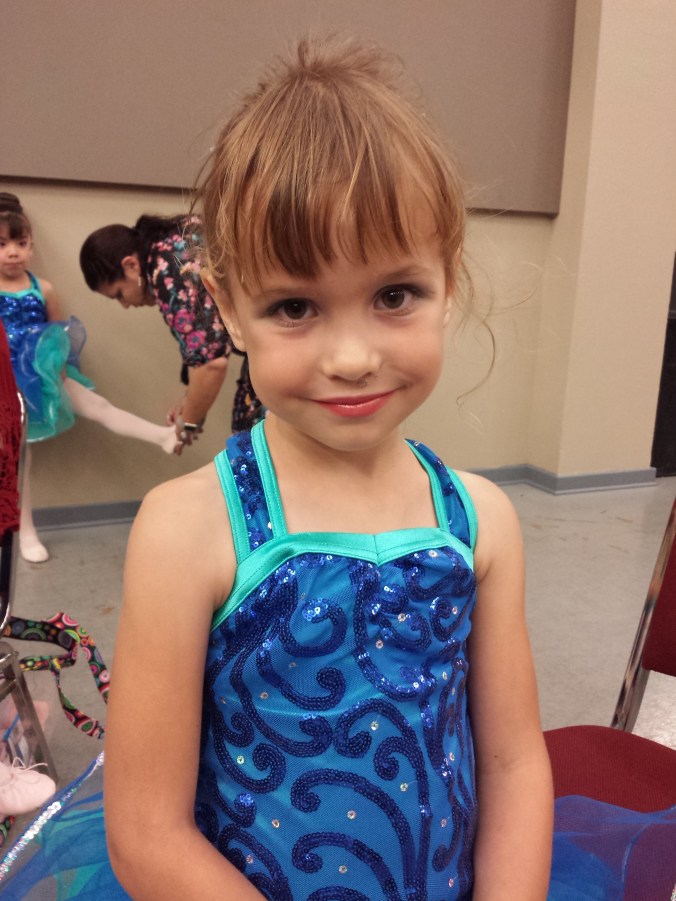 The little girl sat still while her mommy put on make-up.  Just a little to offset the harsh lights on the stage.  A little blush, a little mascara, some eye shadow and lipstick.  Concealer was applied to the scrape below her nose where just a few days before she had taken a nose dive off of her bike.  Her hair was swept up into a bun.  She looked adorably perfect.