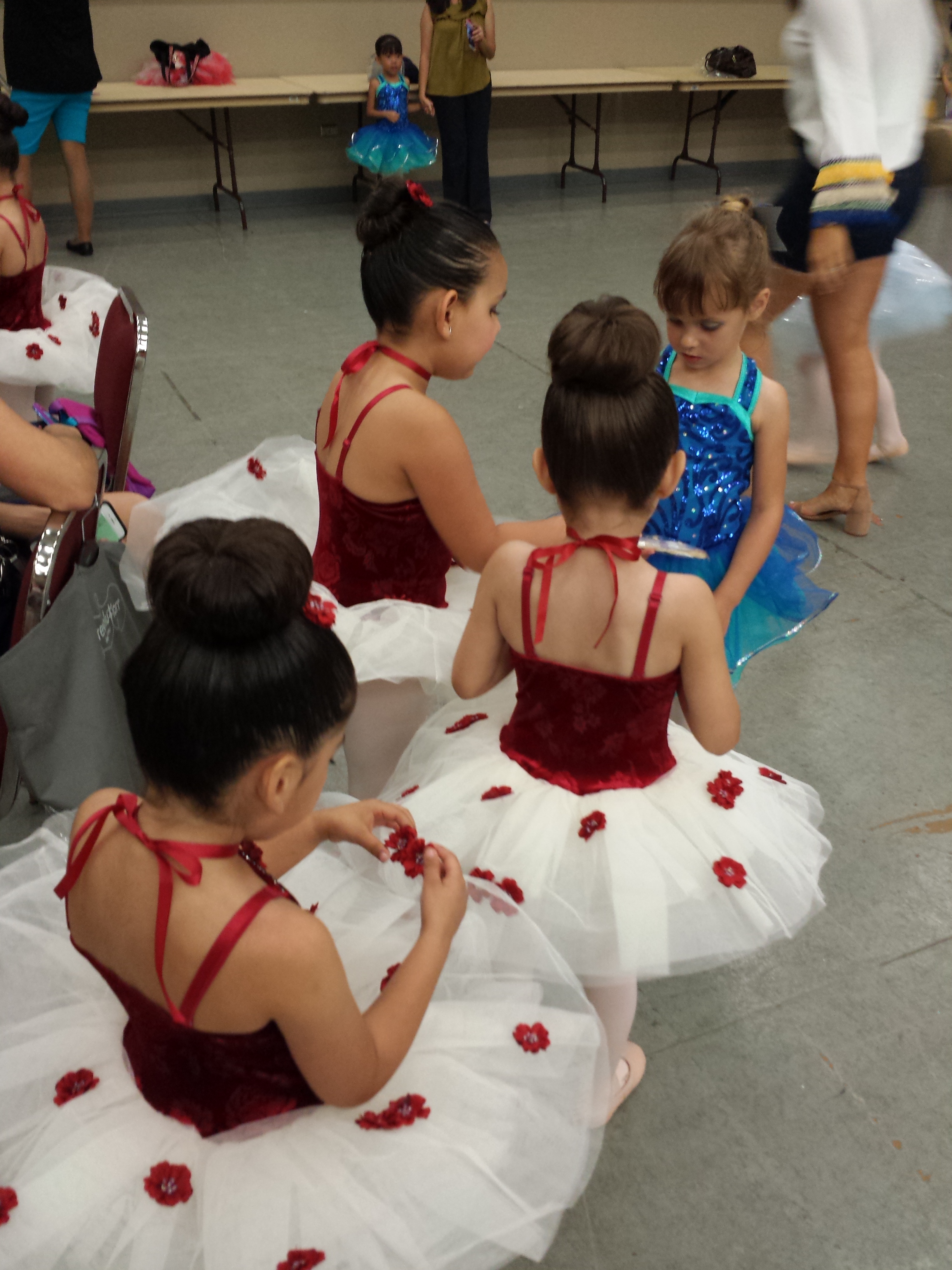 She returned to the dressing room ready to dance again.  While she prepared, she watched the big girls get ready.  They put on their costumes and applied their makeup and when the little girl worked up the courage to tell them how beautiful they were, they adorned her with compliments of their own and the little girl basked in their attention.