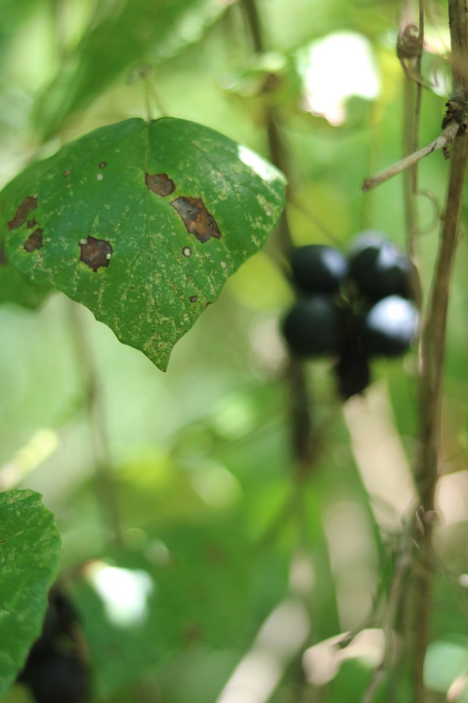 Good thing I decided to be prepared! As I began to look at photos of Muscadine grapes, I thought the leaves looked very jagged compared to the leaves we had seen. I pulled back up the pictures that I had taken and sure enough, the leaves we had seen were not so clearly jagged. I got distracted and walked away from the open book.
