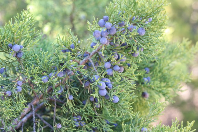 First of all, the leaves, which are scale-like, give off a delightful cedar smell when rubbed between little fingers. (I seriously wash about as much in juniper leaves as I do in socks…pretty sure my kids fill their pockets with the cedar-smelling leaves of every tree they pass because who doesn’t love the smell of cedar?) The foliage of the Ashe Juniper stays a lovely dark green throughout the winter, whereas the foliage of the Eastern Red Juniper changes to something of an olive green to a yellowish green, often turning bronze during the winter season.