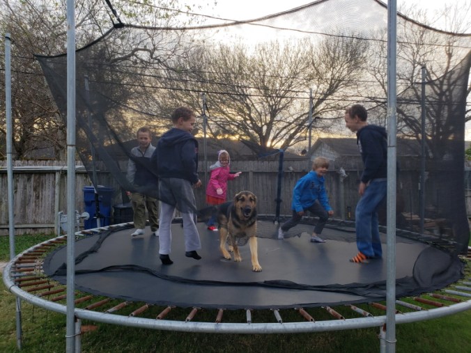 I am laughing…because I’m not sure Choo-Chi realized what he was in for when he jumped up on that trampoline.