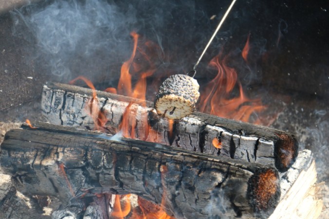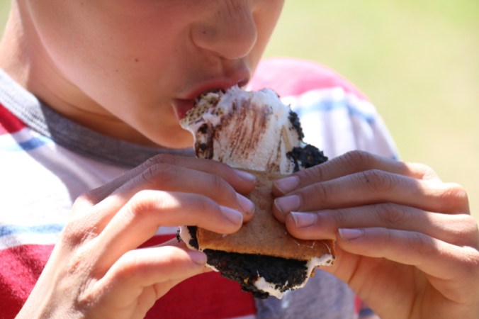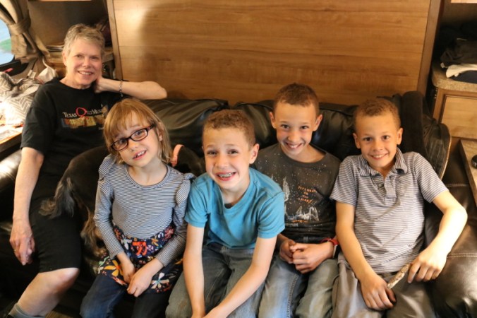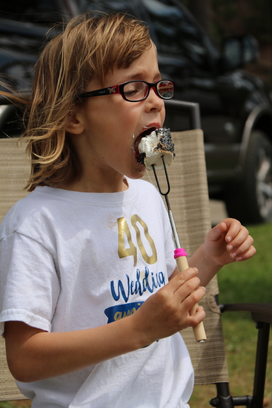 He convinced Pappy to bake a cake with him (using the recipe they created) and he gladly accepted (on behalf of his siblings) an invitation for movie night in the camper (buttery popcorn included).
