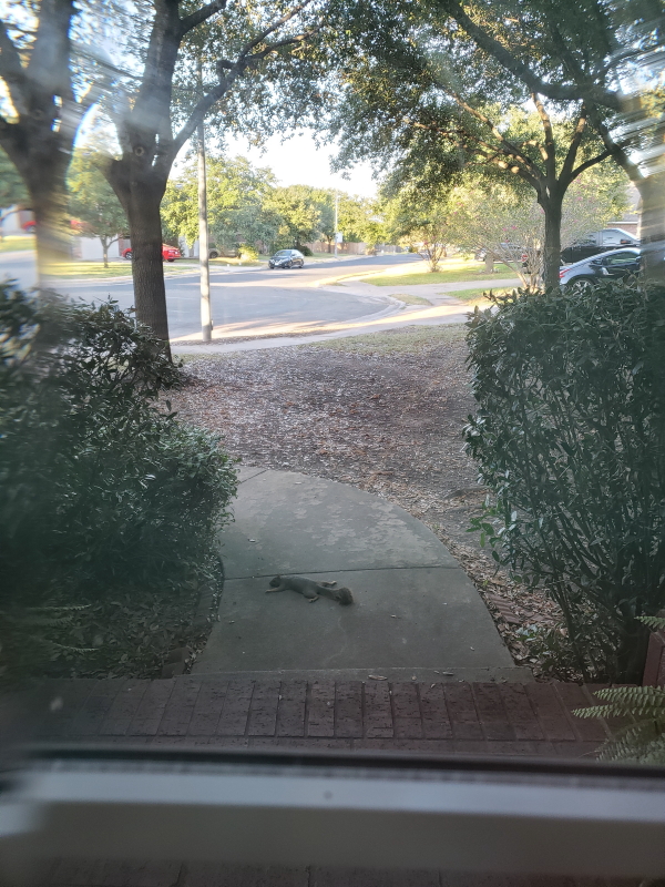 I am watching…this squirrel.  I just about had a scare when I first saw him sprawled out like that…I thought I was going to have to scrape him off the front walk.  Apparently he was cooling off.