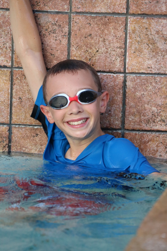 I am wearing…a bathing suit.  Because who can resist a dip in the pool with so many eager little people?